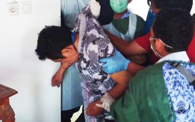 Saat di lantai 2 itulah, Iswanti melihat korban dalam keadaan tergantung dengan tali tampar plastik. Melihat hal itu, saksi lalu berteriak dan turun ke lantai 1 memberi tahu kepada mertua korban. Kemudian para tetangga membantu menurunkan korban yang dalam keadaan meninggal. “Saat itu korban memakai pakaian yang biasa untuk bekerja,” tuturnya.