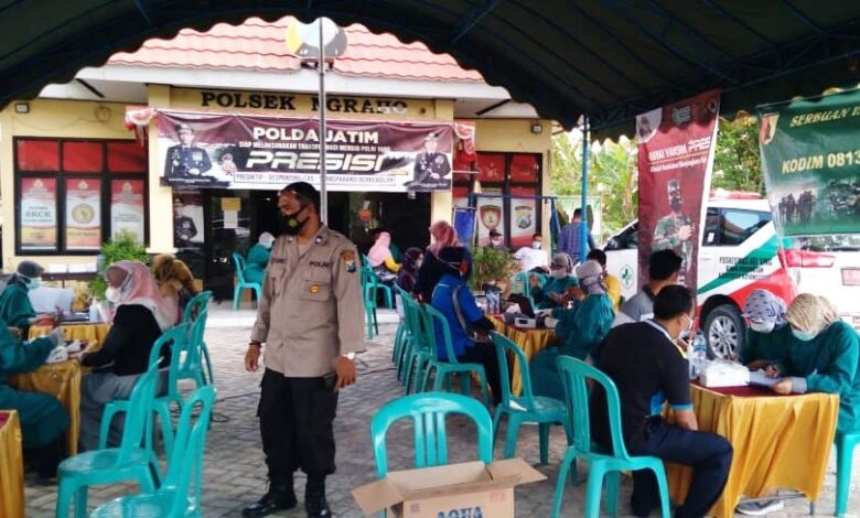 Seperti halnya jajaran Polsek Ngraho Polres Bojonegoro yang pada Sabtu (10/07/2021) menyelenggarakan vaksinasi massal di halaman Mapolsek.