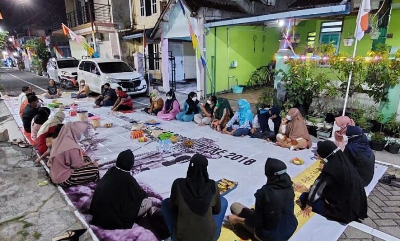 Tampak puluhan keluarga, suami-istri yang datang sambil mengajak anak serta cucu mereka. Duduk lesehan di atas tikar yang digelar sepanjang 50 meter, warga pada malam itu tampak guyup rukun dan saling menyapa sesama tetangga.