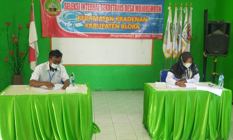 BLORA. – Untuk mengisi kekosongan jabatan Sekdes di Desa Mojorembun Kecamatan Kradenan Kabupaten Blora, Rabu (1/9) lalu telah diadakan tes tertulis mulai pkl 08.00 Wib hingga selesai.