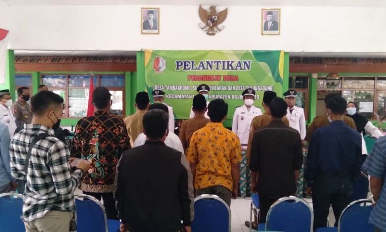 BOJONEGORO. – Bertempat di Pendopo Kecamatan Malo Kabupaten Bojonegoro, empat kepala desa, Rabu (22/9) lalu, masing-masing melantik 4 perangkat desanya yang baru.