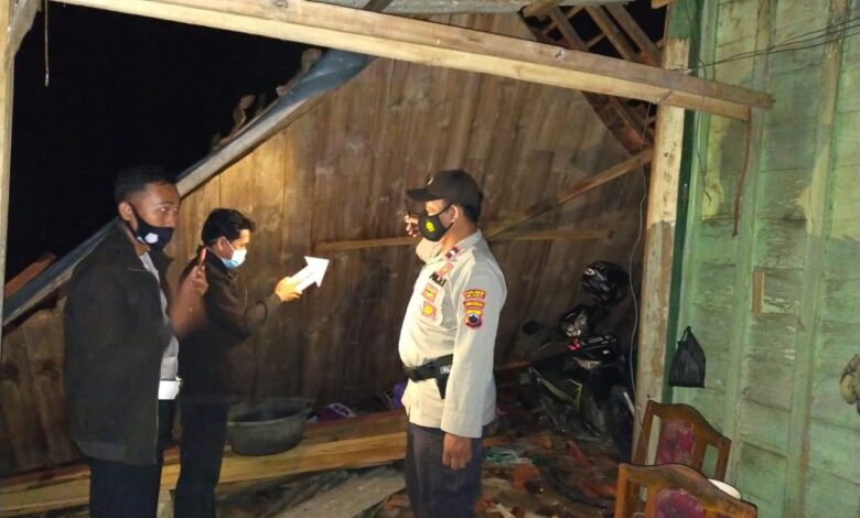 BLORA. – Jumat malam (22/10) lalu, sekitar jam 18.00 Wib hujan melanda Desa Sumberjo dan sekitarnya disertai angin puting beliung. Angin berputar-putar kencang lalu berhembus hingga merobohkan bagian belakang rumah Ngasir, anggota Koramil 10 Kradenan yang berlokasi di RT 07. RW 01 Desa Sumberjo.