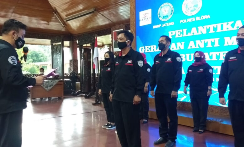 Pelantikan pengurus organisasi yang bergerak di bidang pencegahan Narkoba di Kabupaten Blora ini dihadiri Kepala Badan Narkotika Nasional Provinsi (BNNP) Jawa Tengah, Brigjen Pol Drs Purwo Cahyoko, M Si, dan disaksikan oleh perwakilan Forkompimda Kabupaten Blora diantaranya, Bupati Blora, Kapolres Blora, dan Komandan Kodim 0721 Blora.