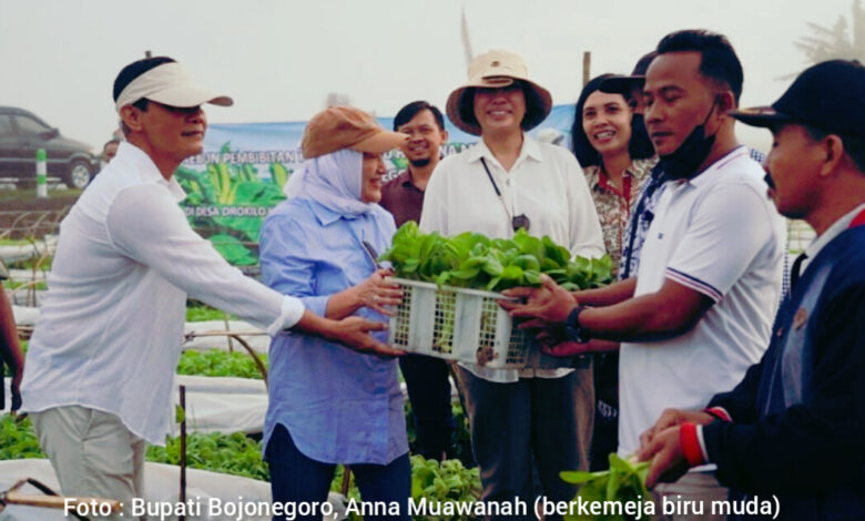 Pagi yang berselimutkan kabut menyambut kehadiran Bupati Bojonegoro Anna Mu’awanah bersama sekelompok petani di area pembibitan pematang sawah Desa Drokilo, Kecamatan Kedungadem, Sabtu, ( 21/5/2022 ).