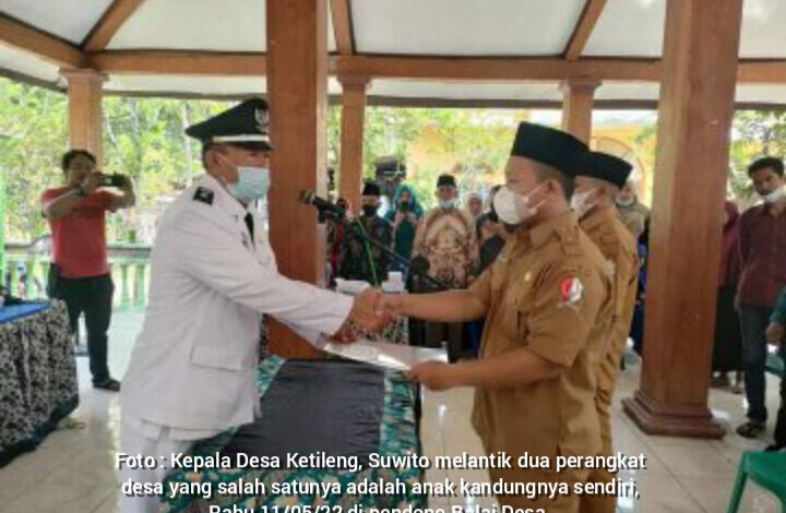 Ditengah upaya pemerintah mewujudkan Good Govermant (Pemerintahan yang baik) masih saja implementasi di bawah semrawut, seperti hal nya yang terjadi hari ini, Rabu 11/05/22 di Desa Ketileng Kecamatan Malo Kabupaten Bojonegoro Jawa Timur menghelat Pelantikan Perangkat Desa. Ada dua perangkat desa yang di lantik, salah satunya bernama Fatkhur Rohmad yang di tengarai adalah anak kandung Kepala Desa menjadi Kasun (Kepala Dusun).