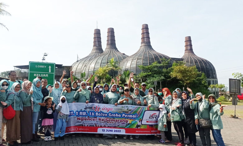 Warga RT.02 Balun Graha Permai Cepu, Minggu (12/06/2022), melakukan darma wisata ke Semarang. Bersama biro jasa Bima Rental & Tour, peserta wisata yang didominasi para ibu-ibu itu memilih Dusun Sumilir sebagai tujuan utama.