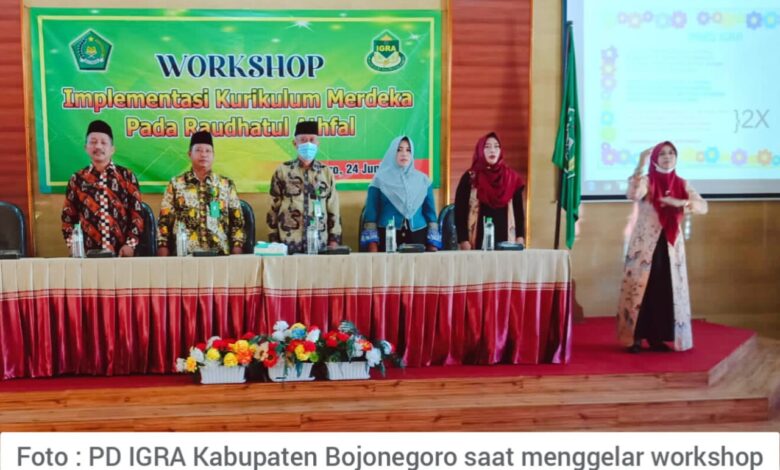 Peningkatan kapasitas pendidik di lingkungan Kemenag Bojonegoro terus dipacu, hal itulah yang membuat PD IGRA (Pengurus Daerah Ikatan Guru Raudhatul Athfal) Bojonegoro menggelar Workshop Implementasi Kurikulum Merdeka bagi guru dan pengawas, Jum’at (24/06/2022)