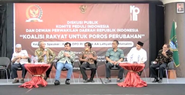Indra mengungkapkan hal itu saat hadiri acara diskusi publik yang diselenggarakan oleh Komite Peduli Indonesia (KPI) dan DPD RI berjudul “Koalisi Rakyat untuk Poros Perubahan” di Ballroom Masjid Agung Trans Studio, Bandung, Jawa Barat maupun melalui virtual.
