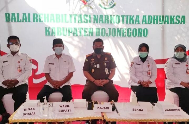Perang melawan penyalah gunaan narkoba terus didengungkan, kemarin Wakil Bupati Bojonegoro Budi Irawanto bersama Sekretaris Daerah (Sekda) Nurul Azizah menghadiri peresmian balai rehabilitasi narkotika adhyaksa yang berada di Puskesmas Kalitidu, Kabupaten Bojonegoro, Jawa timur, Jum’at (01/07/2022). Selain itu, juga hadir Kepala Dinas Kesehatan Bojonegoro Ani Pujiningrum, Kepala Dinas Sosial Bojonegoro Arwan, Forkopimcam serta undangan lainnya.