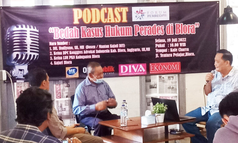 Budiyono yang datang ke Blora untuk memenuhi undangan Forum Pemred Media Blora dalam acara podcast bedah kasus hukum seleksi Perades di Blora, Selasa (19/07/2022) mengatakan, proses peradilan kasus Perades di Blora sangat dipengaruhi moralitas aparat penegak hukum (APH).