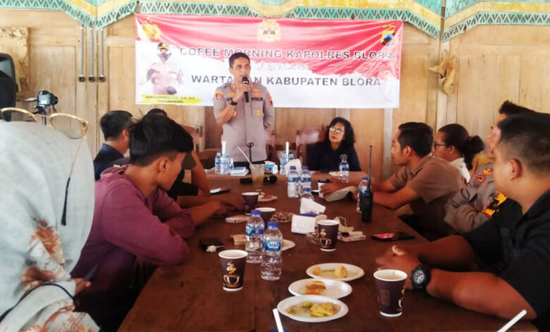 Guna menjalin keakraban dengan awak media, Kapolres Blora AKBP Fahrurrozi, Kamis (11/08/2022 menggelar coffe morning di Joogren Art Desa Seso, Kecamatan Jepon, Kabupaten Blora.