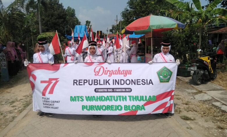 Peringatan HUT RI ke-77 di Desa Purworejo Kecamatan Blora, Kabupaten Blora, Selasa (16/08/2022) dimeriahkan kegiatan karnaval yang melibatkan siswa-siswi SD,SMP dan masyarakat umum.