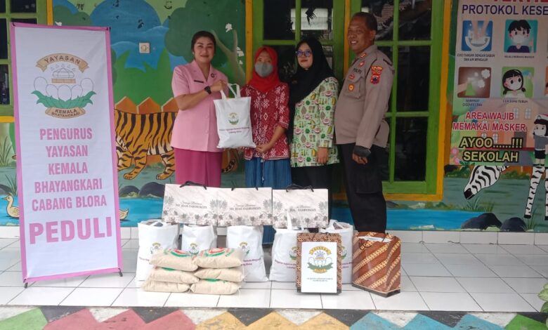 Kunjungi Randublatung, Istri Kapolres Blora Serahkan Bantuan Sembako untuk Guru TK Kemala Bhayangkari 52