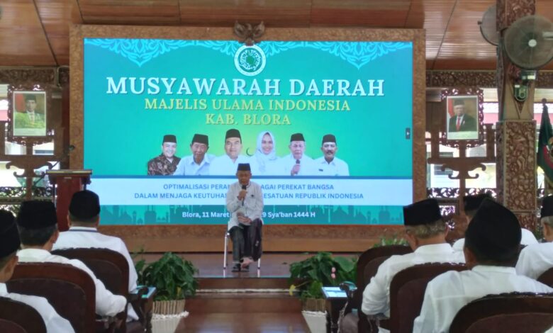 Blora, KORANDIVA.CO – Majelis Ulama Indonesia (MUI) Kabupaten Blora menggelar Musyawarah Daerah (Musda) IX di Pendopo Rumah Dinas Bupati Blora, Sabtu (11/3/2023) Masehi/18 Saban 1444 Hijriah.