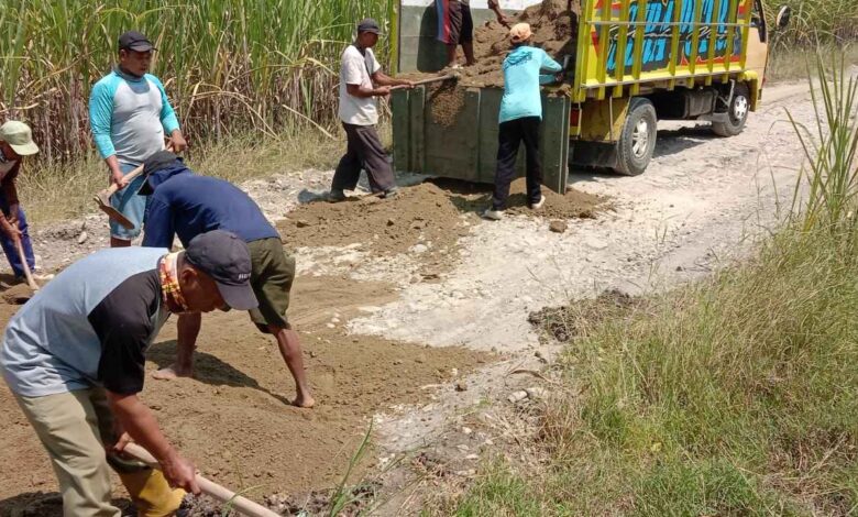 Gandeng Petani Tebu Masyarakat Tlogotuwung Kerja Bakti Nguruk Jalan