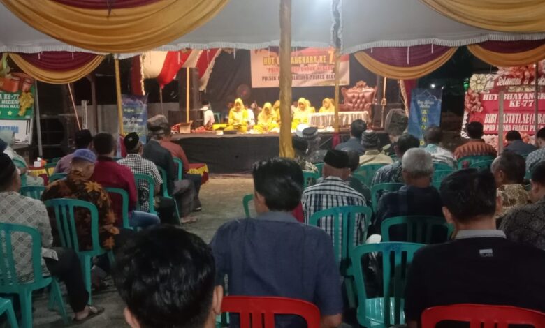 Acara peringatan Hari Bhayangkara ke-77 di halaman Mapolsek Randublatung, Selasa (4/6/2022) diisi pengajian umum dengan menghadirkan Kiyai Ali Muchsin dari Desa Wulung Kecamatan Randublatung Kabupaten Blora. Sebelum pengajian dimulai, digelar pentas Kadroh Anida pimpinan Siti khoirunisa dari desa Kediren Kecamatan Randublatung.