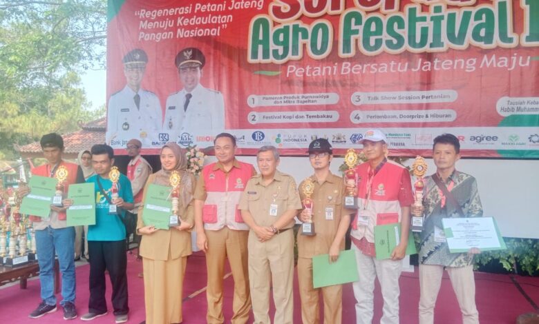 Penyerahan sertifikat penghargaan dilakukan oleh Sekretaris Dinas Pertanian Dan Perkebunan Provinsi Jawa Tengah di panggung sambutan Soropadan Agro Fistival 2023.