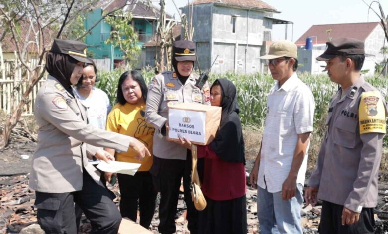 Korban Kebakaran di Desa Seso Kecamatan Jepon Terima Bantuan dari Polres Blora