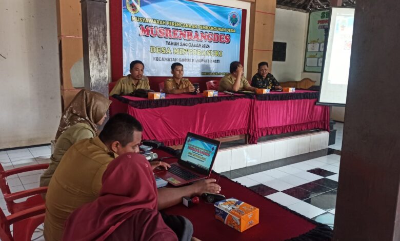 Musyawarah Perencanaan Pembangunan (Musrenbang) Desa Mintobasuki Kecamatan Gabus, Kabupaten Pati berlangsung di Aula Balai Desa Mintobasuki, Senin (16/10/2023).