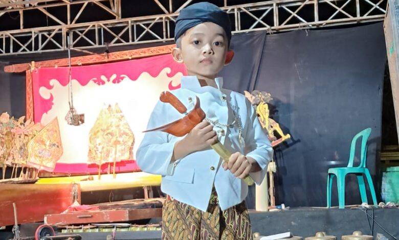 Tampil di Balai Desa Ngalapan, Dalang Cilik Geza Haidar Abimanyu Bawakan Lakon “Perang Gagal”