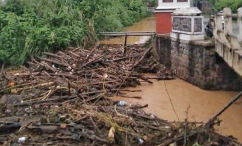 Pati Diguyur Hujan, Banyak Sungai Meluap Membawa Sampah Kayu
