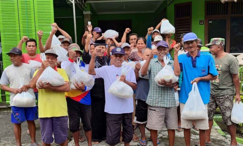Suasana pembagian paket sembako di warnai nuansa K3: kegembiraan, kekeluargaan dan keharuan.