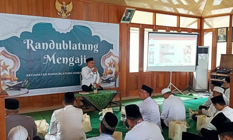 Korandiva – BLORA.– Pengajian rutin kembali digelar di Pendopo Kantor Kecamatan Randublatung pada Jumat Pon (20/6/2025). Kegiatan bertema “Randublatung Mengaji” ini dihadiri jajaran Forkopimcam setempat, mulai dari Camat Drs. Bukri M.Si, Danramil Kapten Kav Teguh Linarto, hingga Kapolsek Iptu Sugiyanto.