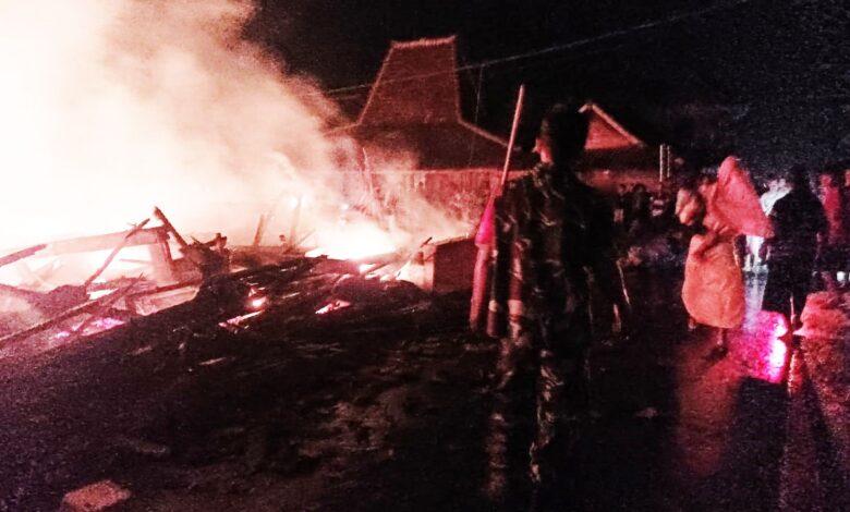 Korandiva-BLORA.- Dua rumah warga di Desa Kajengan, Kecamatan Todanan, Kabupaten Blora, ludes terbakar akibat dugaan korsleting listrik pada Rabu (25/6) sekitar pukul 18.30 WIB. Kebakaran yang terjadi menjelang waktu magrib itu mengejutkan warga setempat dan menyebabkan dua keluarga kehilangan tempat tinggal.