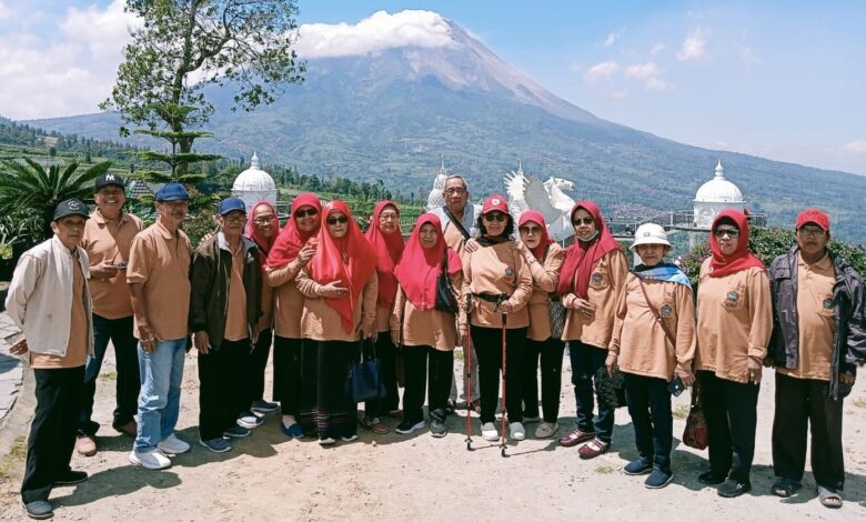 Korandiva-MAGELANG.– Pengurus Persatuan Wredatama Republik Indonesia (PWRI) Kelurahan Karangjati, Kecamatan Blora, Kabupaten Blora, menggelar kegiatan wisata bersama ke sejumlah destinasi alam di wilayah Jawa Tengah, Rabu (3/9/2025). Tiga lokasi wisata yang dikunjungi adalah Ketep Pass di Desa Ketep, Kecamatan Sawangan (Kabupaten Magelang), Negeri Kahyangan di Desa Wonolelo, Kecamatan Sawangan (Kabupaten Magelang), serta New Selo di Desa Samiran, Kecamatan Selo (Kabupaten Boyolali).