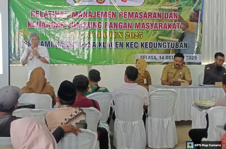 Korandiva-BLORA.- Dalam rangka memperkuat kapasitas pengelolaan Lumbung Pangan Masyarakat, Lembaga Pemberdayaan Masyarakat (LPM) Sami Karyo Desa Klagen, Kecamatan Kedungtuban, Kabupaten Blora, menyelenggarakan Pelatihan Manajemen Pemasaran dan Keuangan yang diikuti oleh 80 peserta dari berbagai kecamatan, seperti Klagen, Sambong, Tunjungan, dan Todanan, Selasa (14/10/2025).