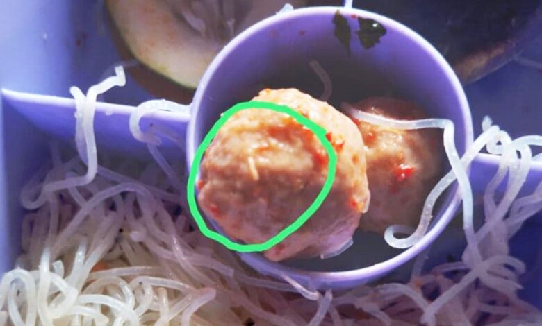 Menu makan bergizi hari itu terdiri dari bihun goreng, tiga butir telur puyuh, dan tiga pentol bakso. Salah satu wali murid mengaku kaget dan khawatir setelah mendapati belatung di makanan anaknya.