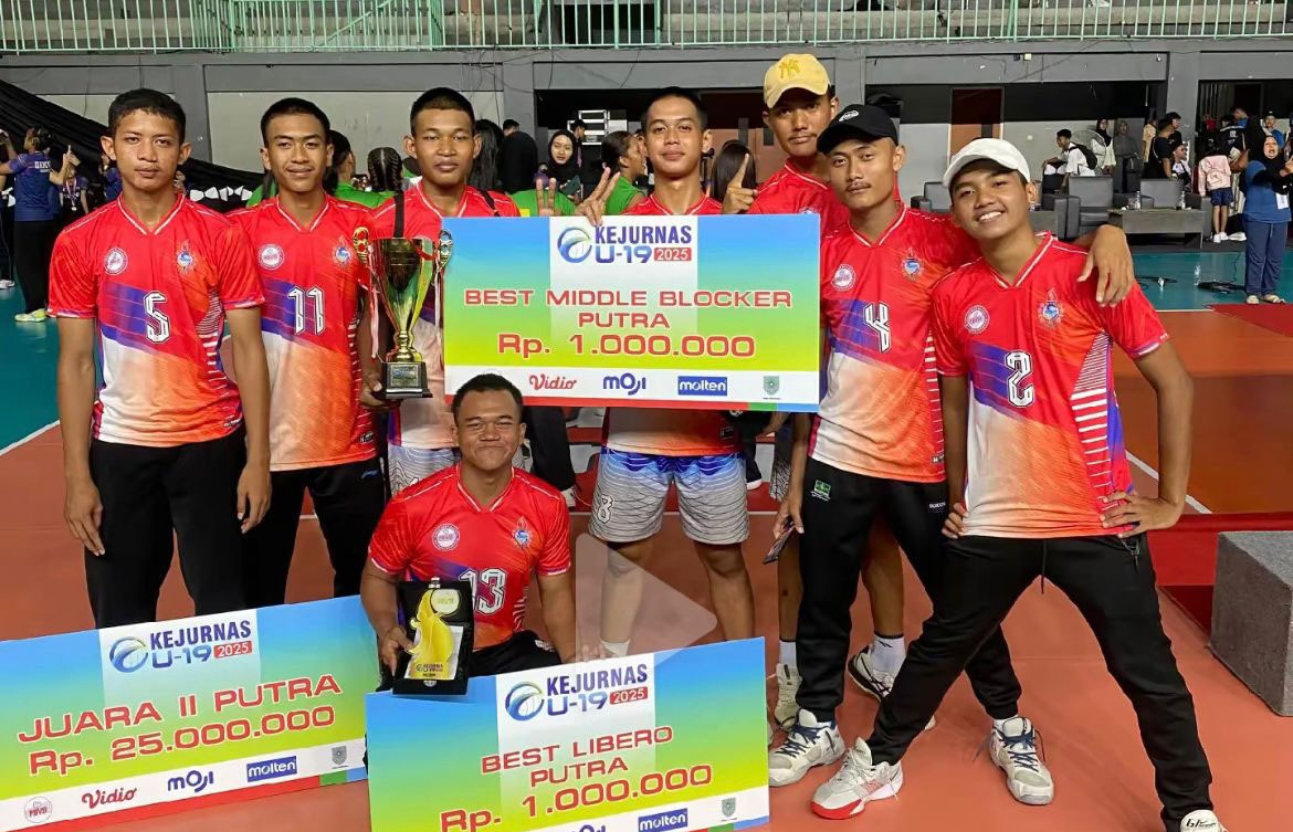 Korandiva-BLORA.- Hafizh Kevin Byantara, atau yang lebih akrab disapa Kevin, putra asal Blora, berhasil membawa timnya, Porvit KUDUS, meraih juara dua di ajang Kejurnas Bola Voli U-19 yang berlangsung di GOR Mastrip, Probolinggo. Kejurnas ini diikuti oleh 62 tim dari seluruh Indonesia, dengan 34 tim putra dan 28 tim putri.