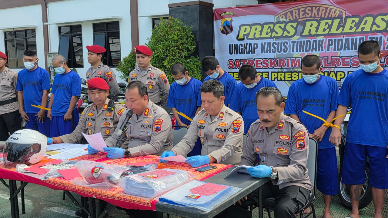Korandiva-BLORA.– Upaya keras jajaran Satuan Reserse Kriminal (Satreskrim) Polres Blora membuahkan hasil signifikan dengan terungkapnya komplotan pelaku pencurian dengan pemberatan (Curat) kendaraan bermotor di Bogorejo yang beraksi lintas kabupaten. Total 18 lokasi kejahatan (TKP) yang dilakukan pelaku utama berhasil diakui.