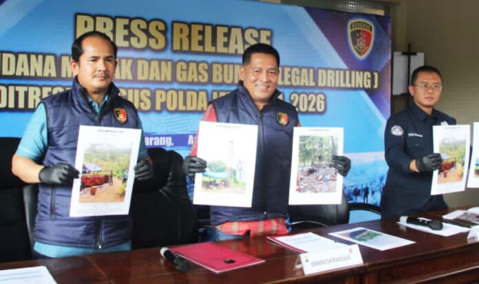 Dari lokasi, polisi menyita satu set menara rig, mesin pompa, puluhan pipa pengeboran, mesin bor, serta sejumlah tangki berkapasitas 1.000 liter berisi minyak mentah. Bukti transaksi penjualan ilegal juga turut diamankan.