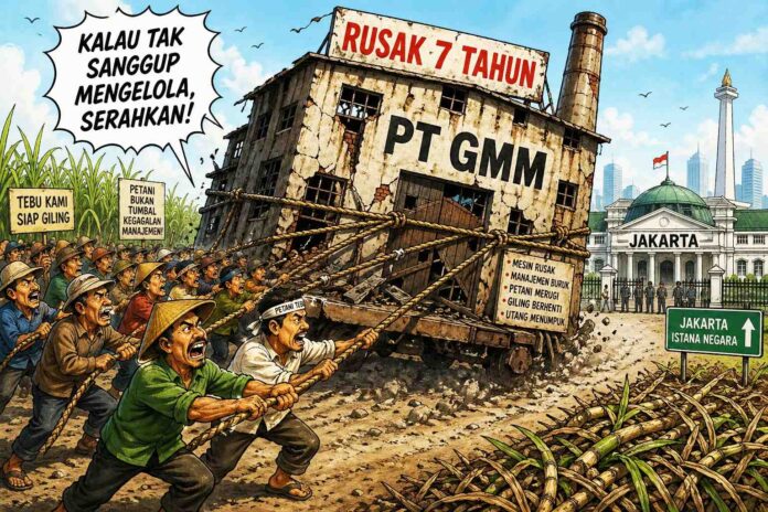 Pernyataan itu menjadi sinyal keras atas kekecewaan petani terhadap kondisi pabrik gula yang dinilai terus gagal memberi kepastian usaha. Selama tujuh tahun terakhir, menurut APTRI, manajemen PT GMM Bulog telah membuat petani terus menanggung kerugian.