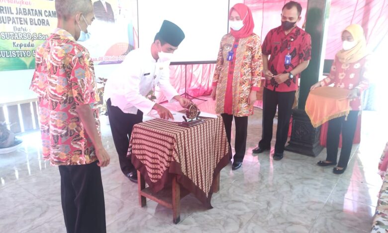 BLORA. – Bertempat di pendopo kantor kecamatan, Jumat (08/10/2021) dilaksanakan giat serah terima jabatan Camat Kradenan dari pejabat lama Sutarso, S.Sos, MSI, kepada pejabat baru Nunik Sulistiyo Herniyati, S.SOS.