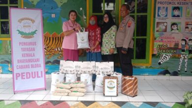 Kunjungi Randublatung, Istri Kapolres Blora Serahkan Bantuan Sembako untuk Guru TK Kemala Bhayangkari 52