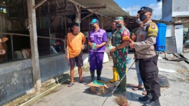 Polsek Kalitidu Lakukan Penyemprotan Disinfektan, Antisipasi Penyebaran PMK Diwilayahnya