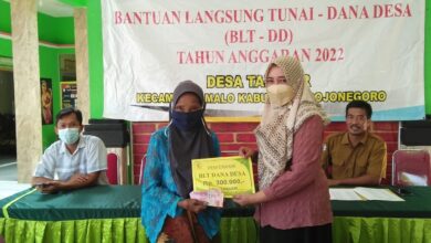 BOJONEGORO.- Kepala Desa Tanggir, Kecamatan Malo, Kabupaten Bojonegoro, Wiwik Murtiningsih, menyerahkan BLT (Bantuan Langsung Tunai) kepada 76 orang warga miskin…