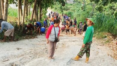 Warga Tiga Desa di Kecamatan Jepon Lakukan Gotong Royong Perbaiki Jalan Rusak