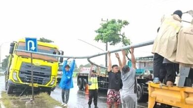 Diduga Sopir Ngantuk, Truk Tronton Tabrak Pembatas Jalan di Jalur Lingkar Selatan Pati